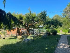 This beautifully restored home sleeps up to 7 and features a full kitchen with a vintage refrigerator, stove, oven, microwave, dishwasher, coffee maker, and all the essentials for prepping snacks or sipping mimosas. With modern comforts like WiFi, a smart TV, washer/dryer, and toiletry essentials — plus charming extras like a cozy library, board games, and a Pack ‘n Play — you’ll have everything you need for a joyful and stress-free start to your day.